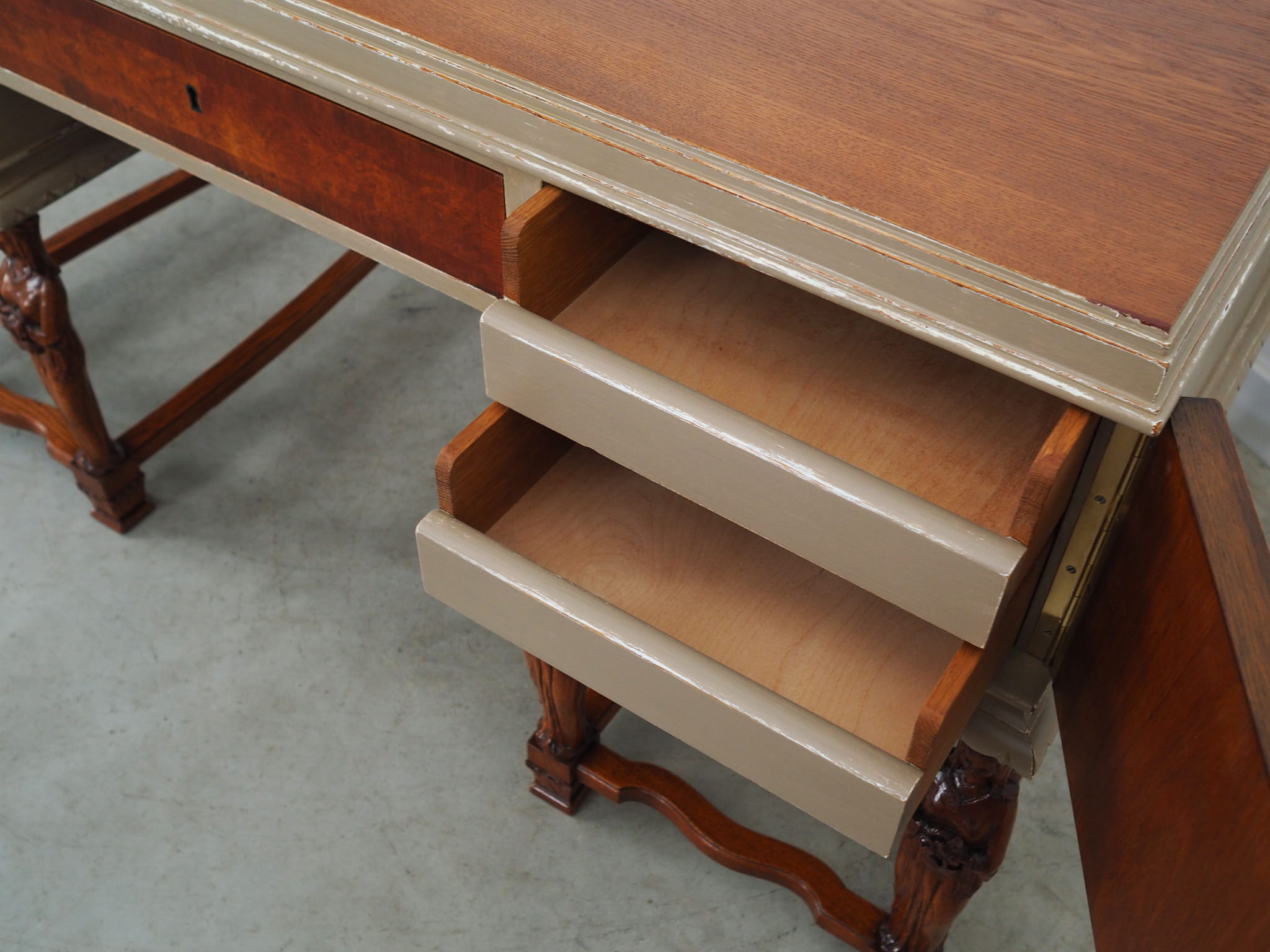 Biurko wykonane zostało w latach 50-tych, produkcja duńska.
