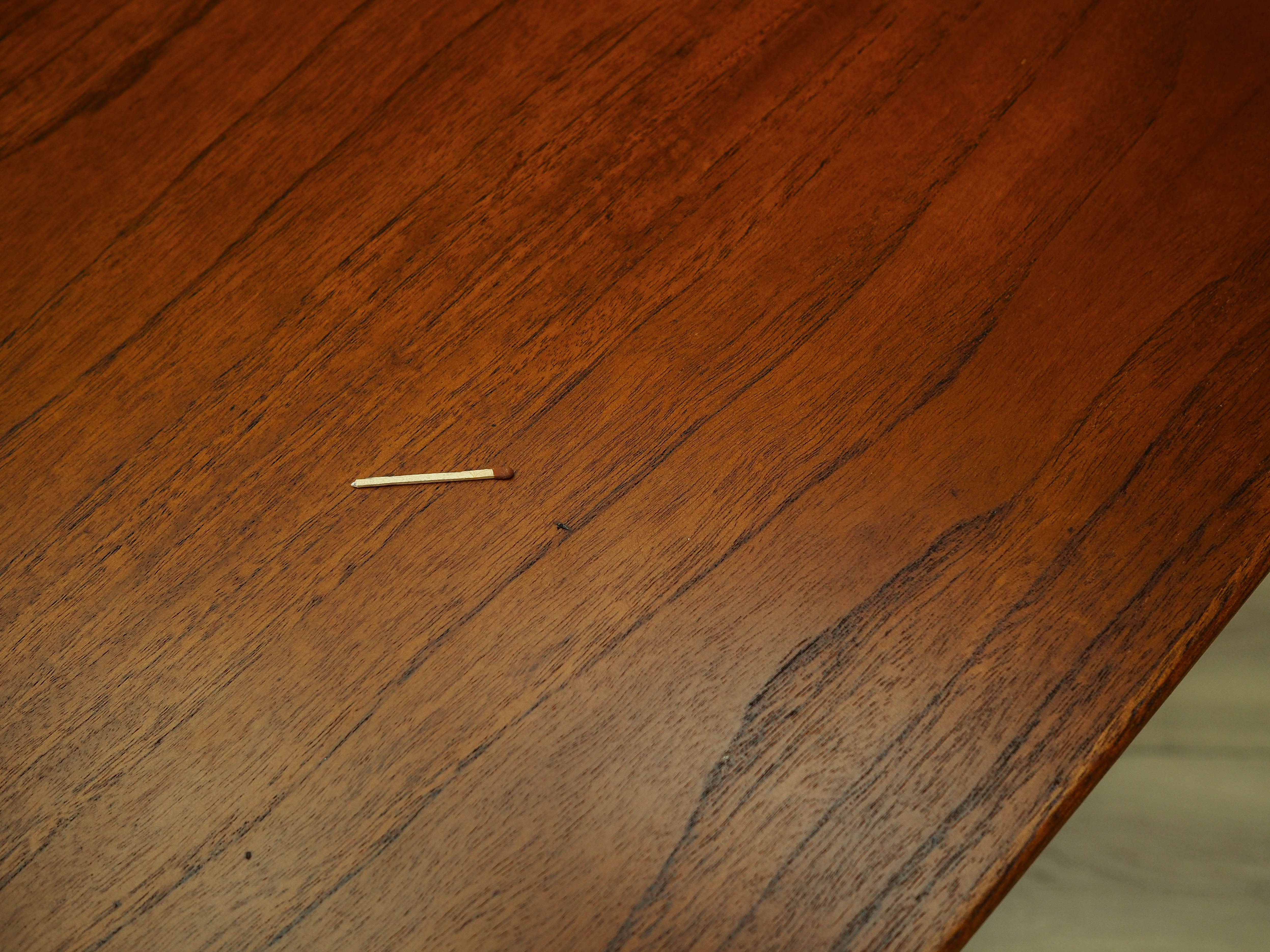 Stan: Powierzchnia mebla po odświeżeniu. Widoczne drobne zarysowania, obicia lub ubytki forniru, które zostały wypełnione. Większe ślady użytkowania zawsze przedstawiamy na zdjęciach. Produkt przygotowany do bezpośredniego użytkowania.