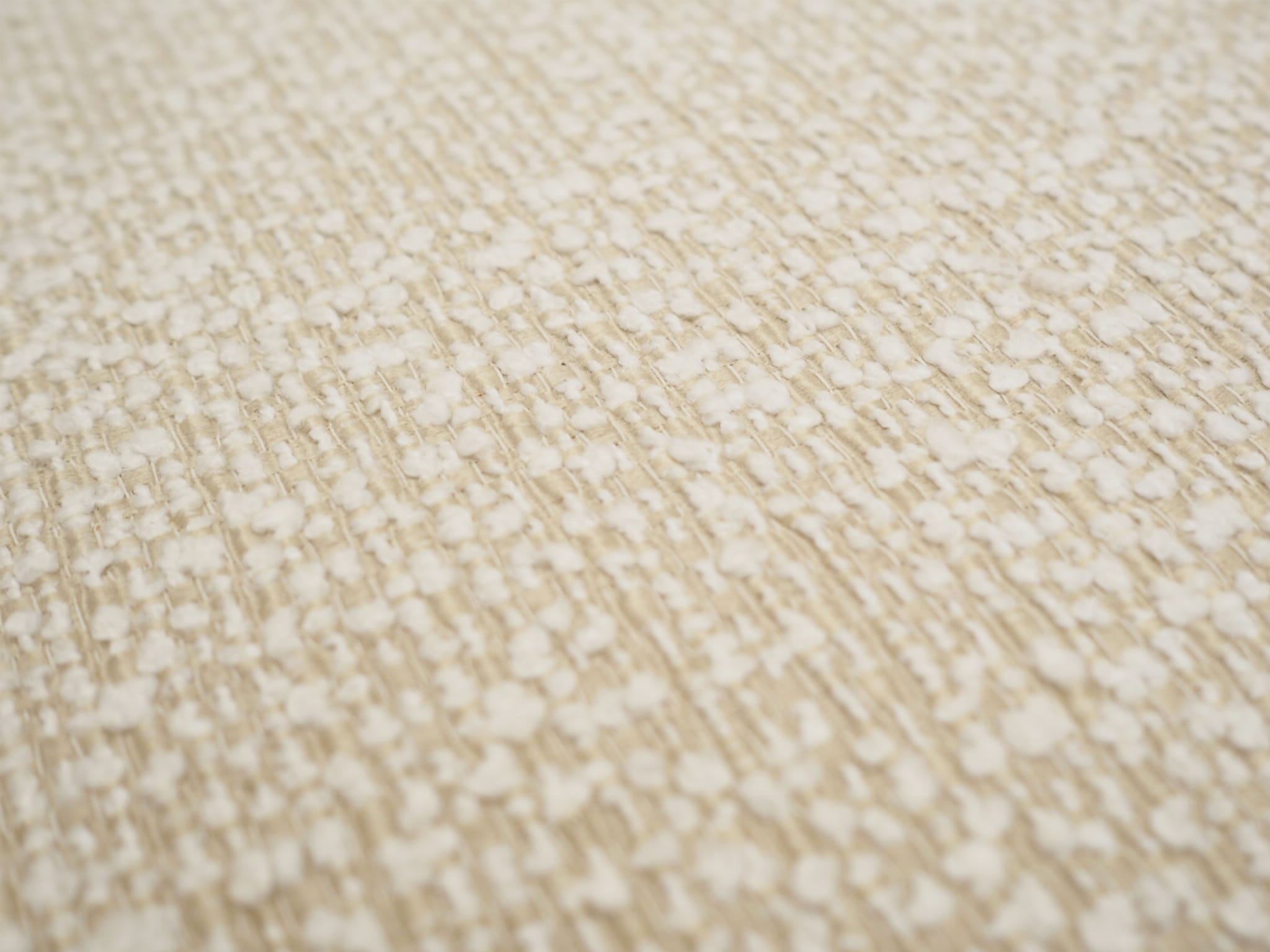 Konstrukcja wykonana została z litego drewna. Nogi wykonane z litego drewna dębowego, podłokietniki z drewna tekowego. Drewno po odświeżeniu. Fotel został poddany renowacji tapicerskiej, tkanina wymieniona na nową. Tapicerka została wykonana w kolorze kremowym, wykorzystana została wysokogatunkowa tkanina.