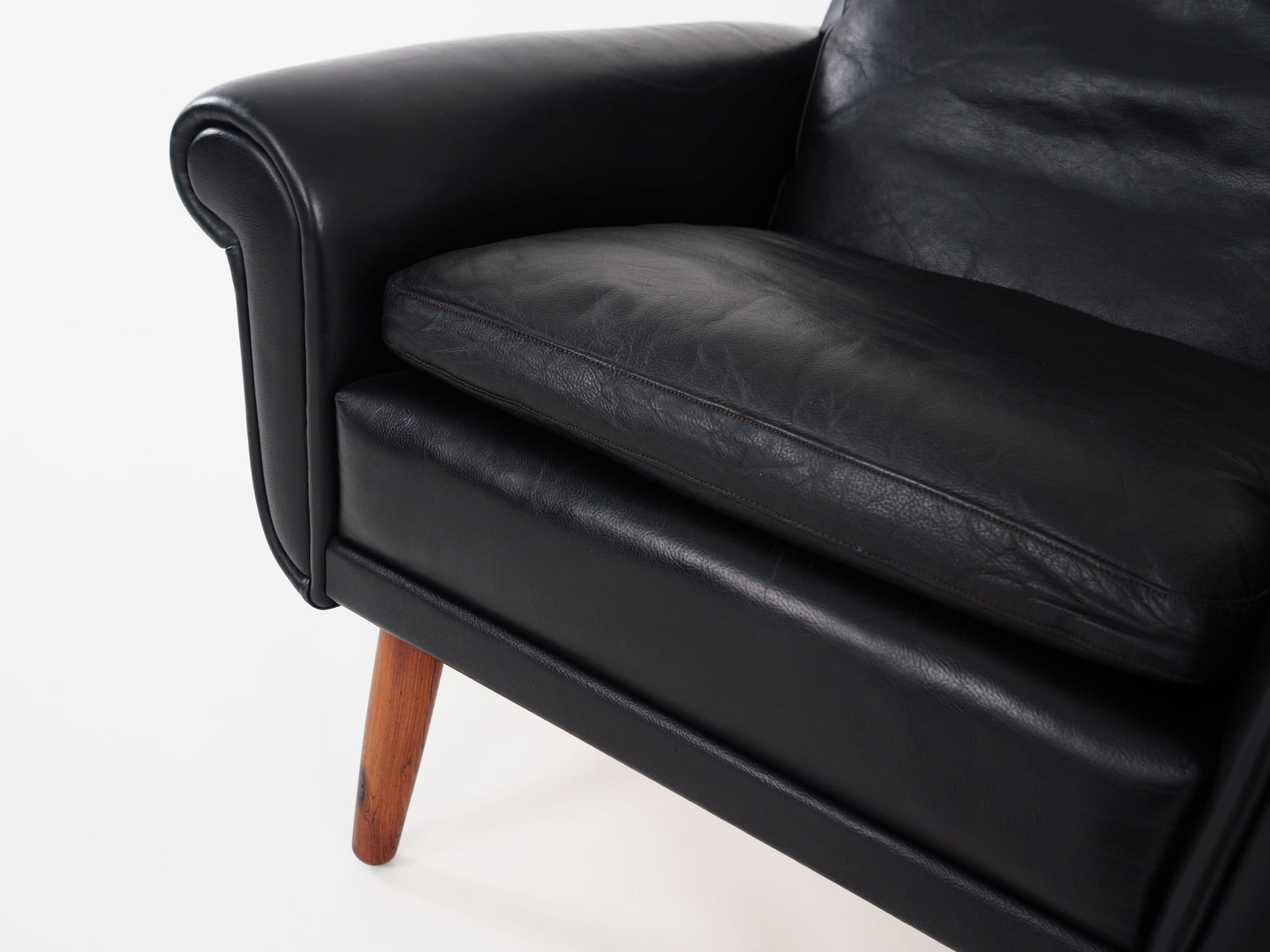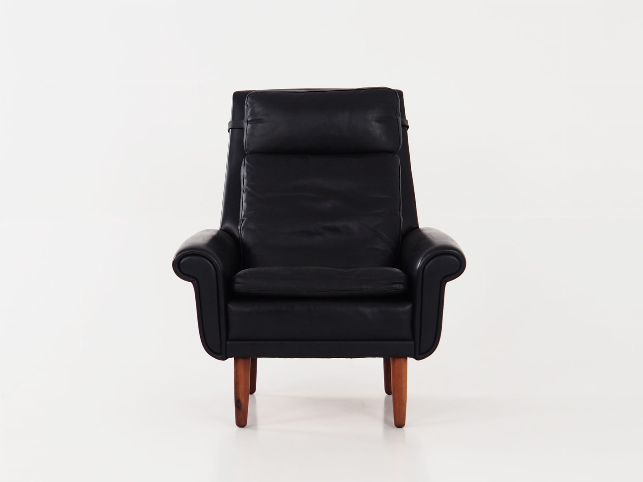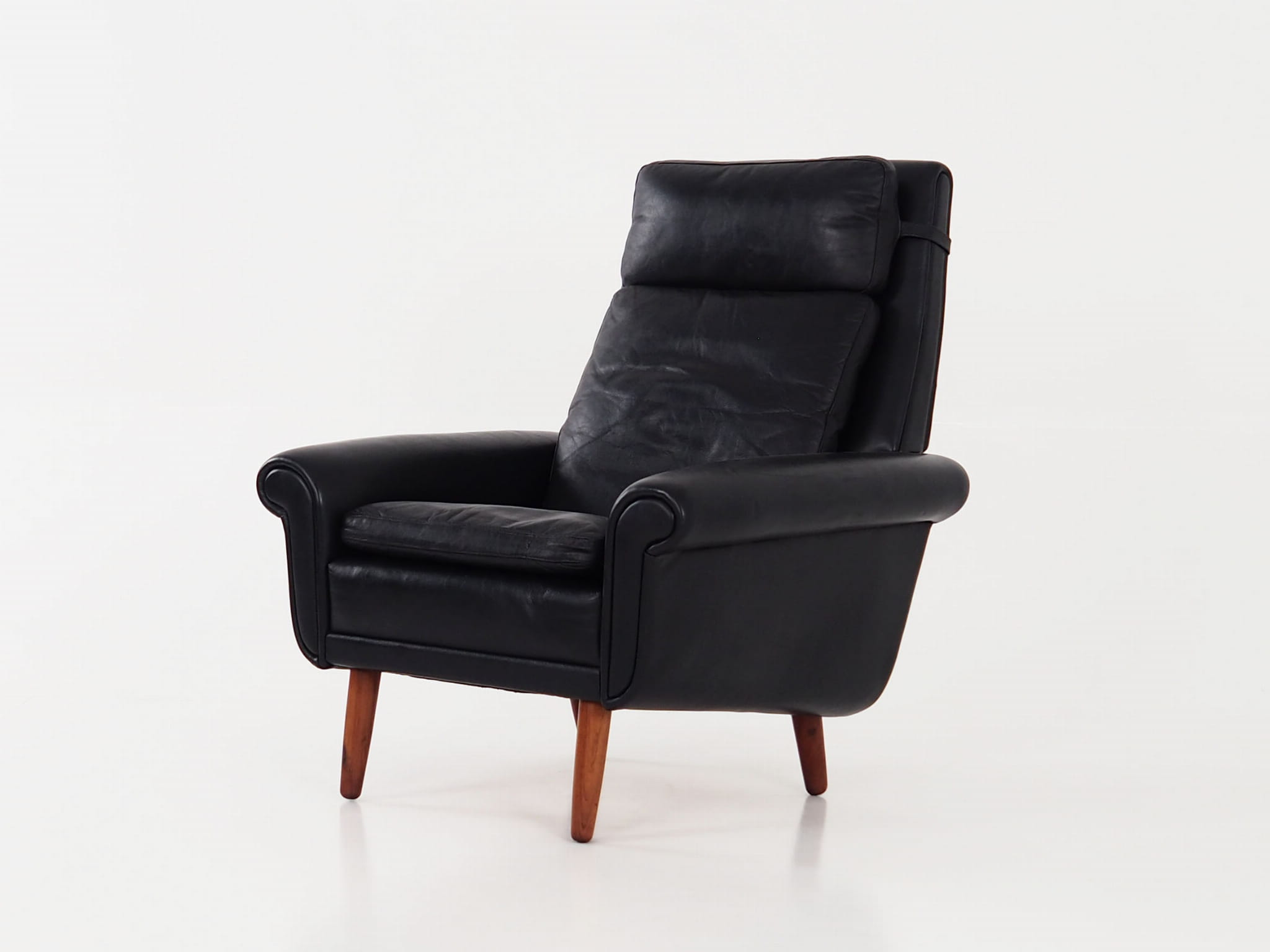 Fotel skórzany czarny, duński design, lata 70, produkcja: Dania
