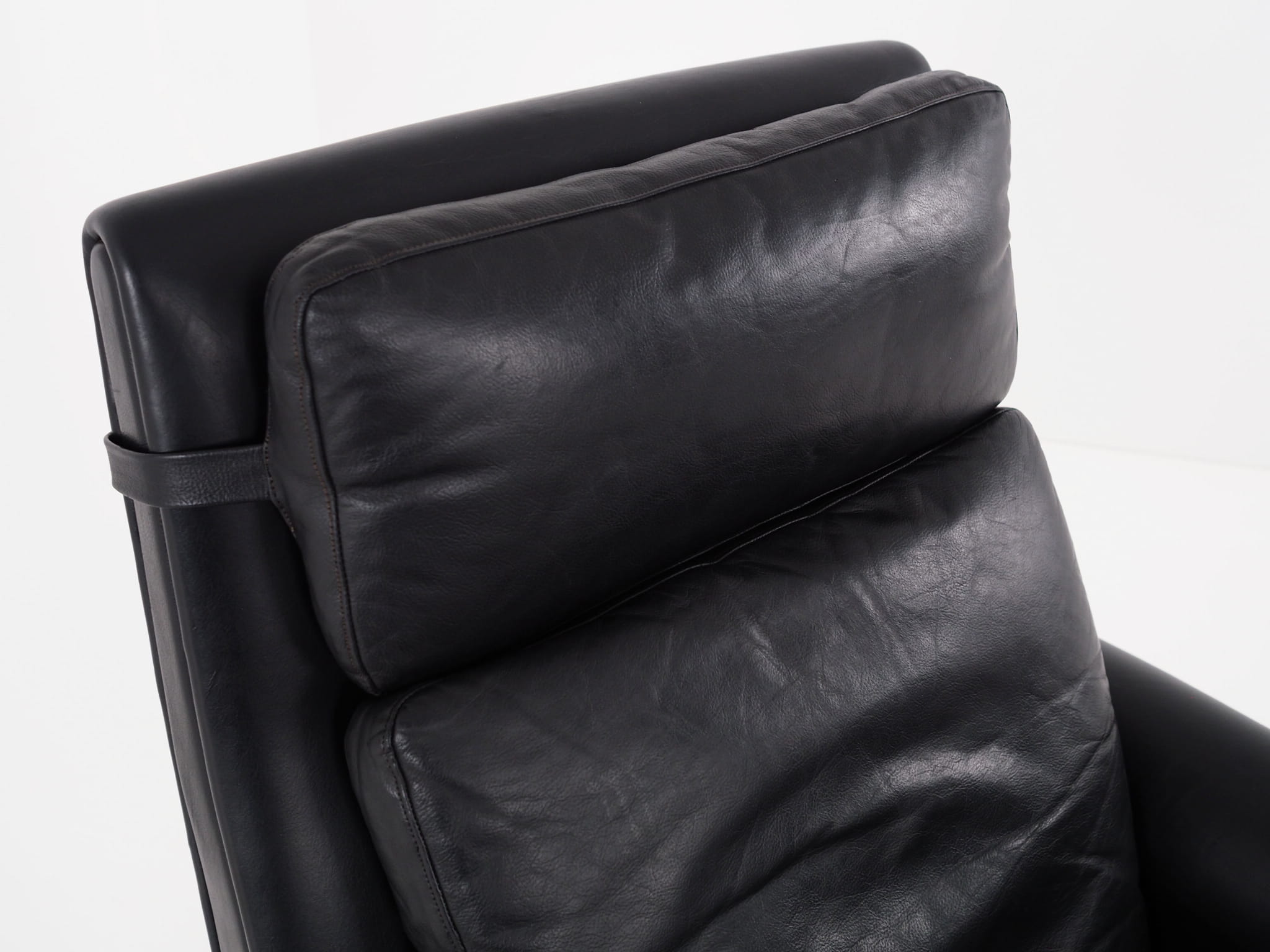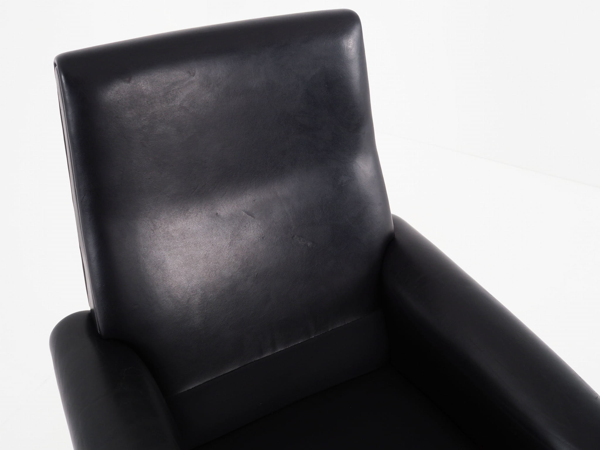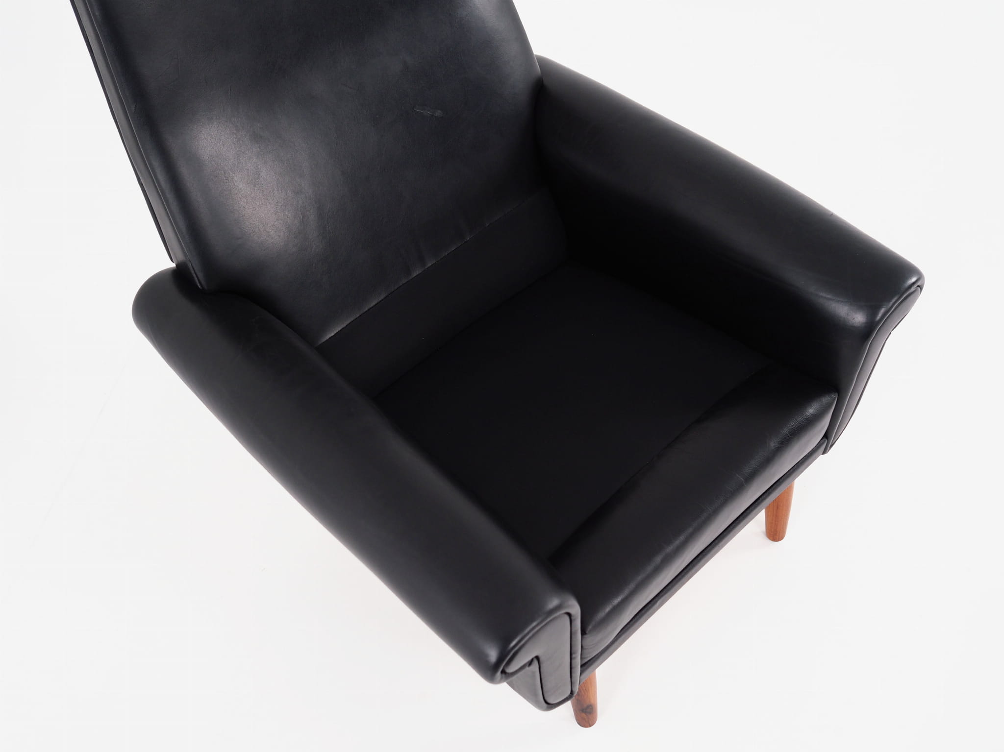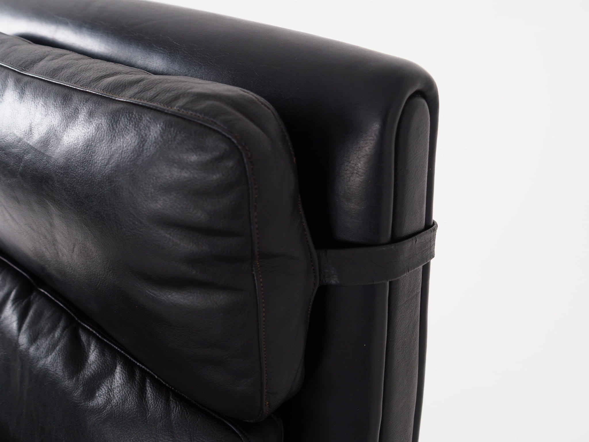 Fotel skórzany czarny, duński design, lata 70, produkcja: Dania