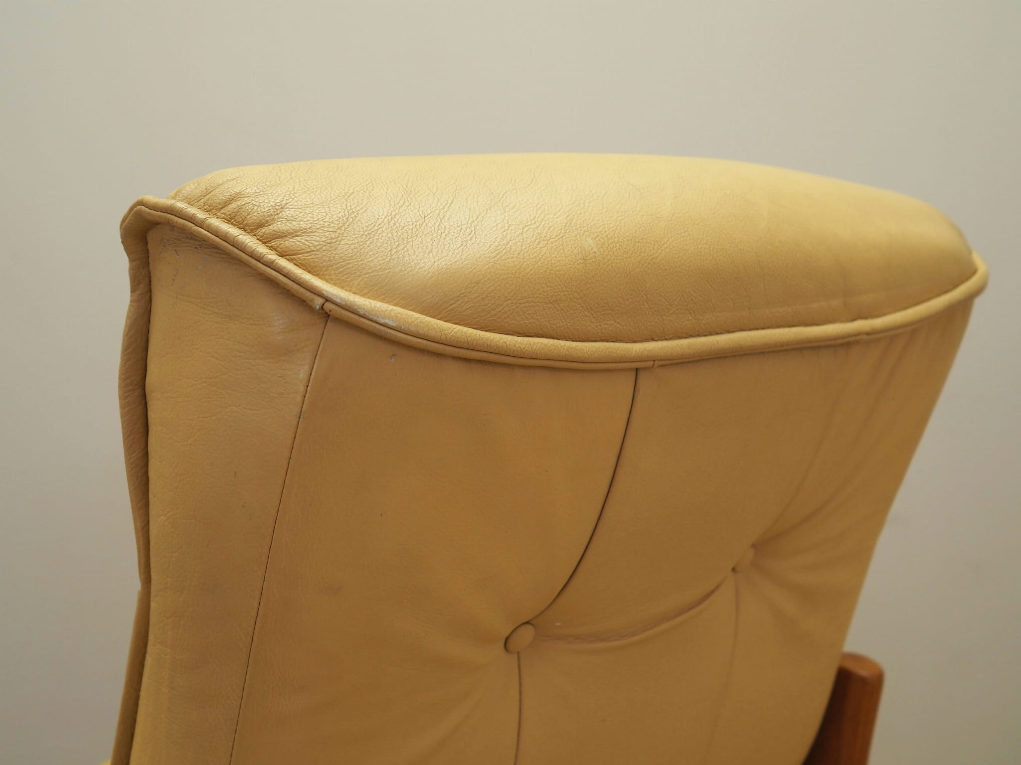 Fotel skórzany żółty, duński design, lata 60, produkcja: Dania
