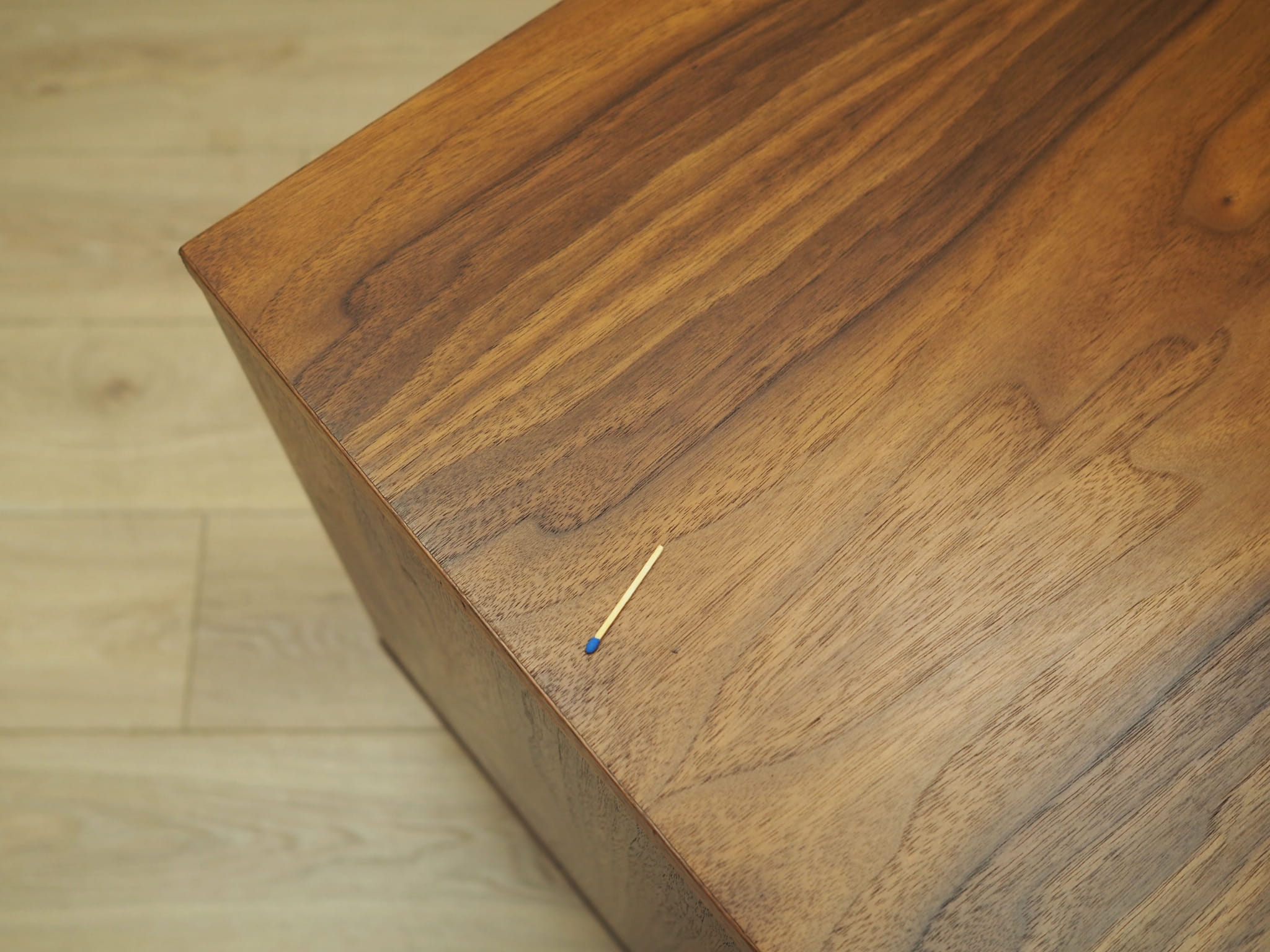 Stan: Powierzchnia mebla po odświeżeniu. Widoczne drobne zarysowania oraz uzupełnione ubytki forniru. Większe ślady użytkowania zawsze przedstawiamy na zdjęciach. Produkt przygotowany bezpośrednio do użytkowania.