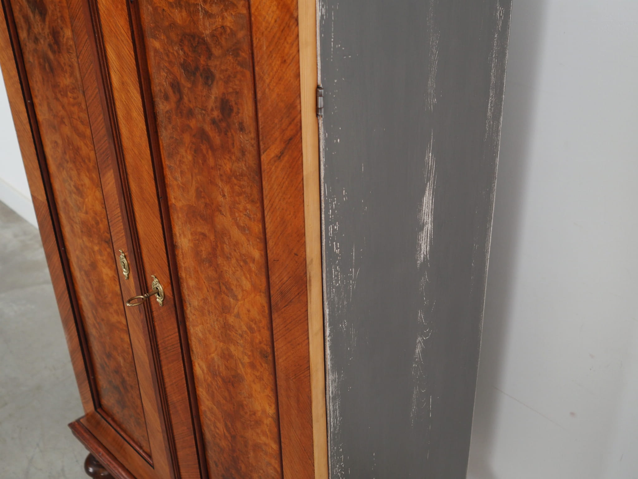 Stan: Powierzchnia mebla wykończona metodą shabby chic z autorskimi przetarciami. Widoczne drobne zarysowania oraz obicia. Większe ślady użytkowania zawsze przedstawiamy na zdjęciach. Produkt przygotowany bezpośrednio do użytkowania. Mebel posiada wypaczone jedno skrzydło drzwiczek.