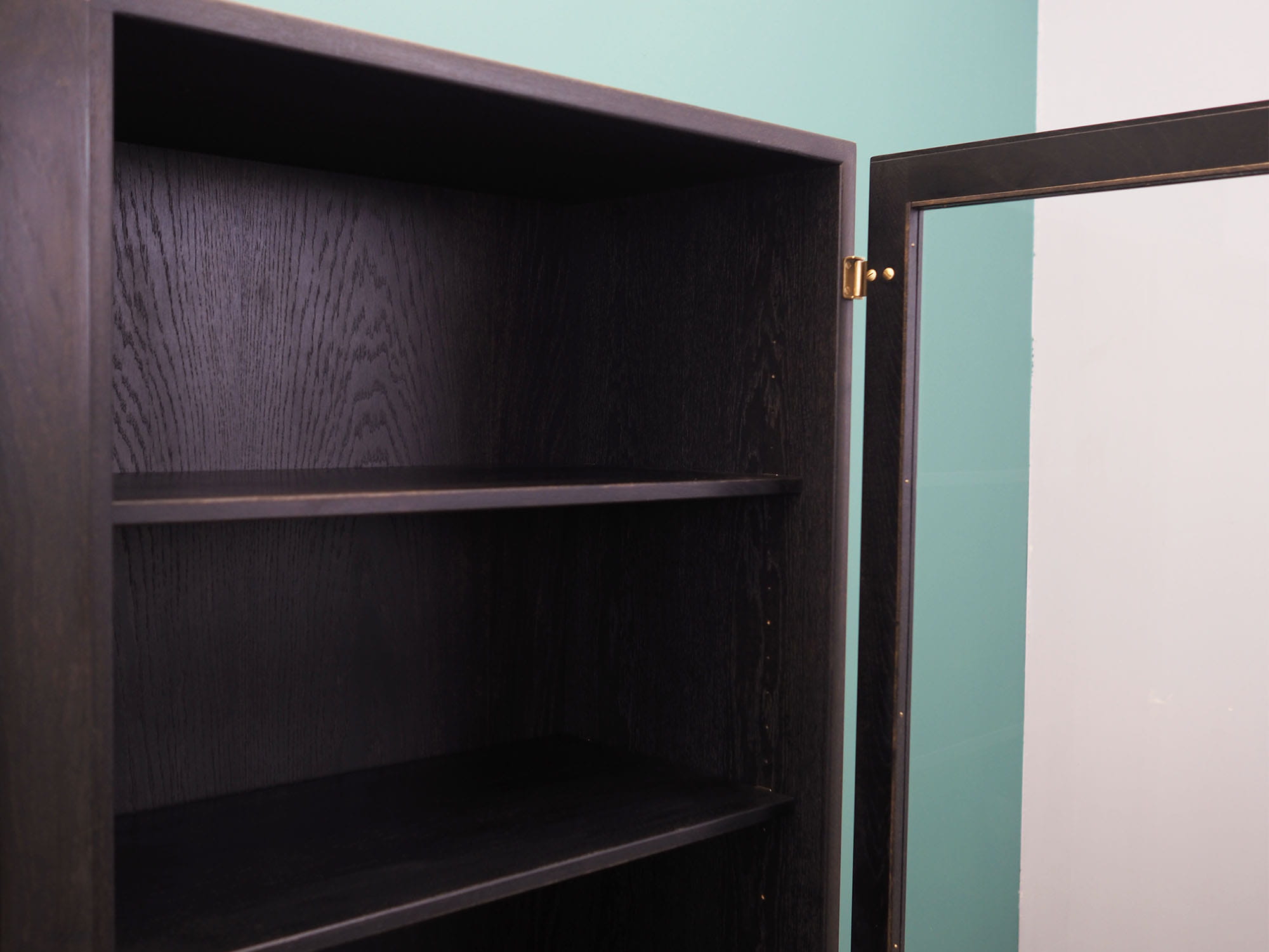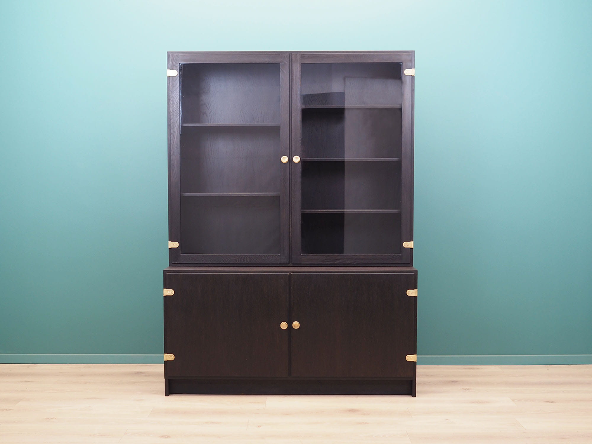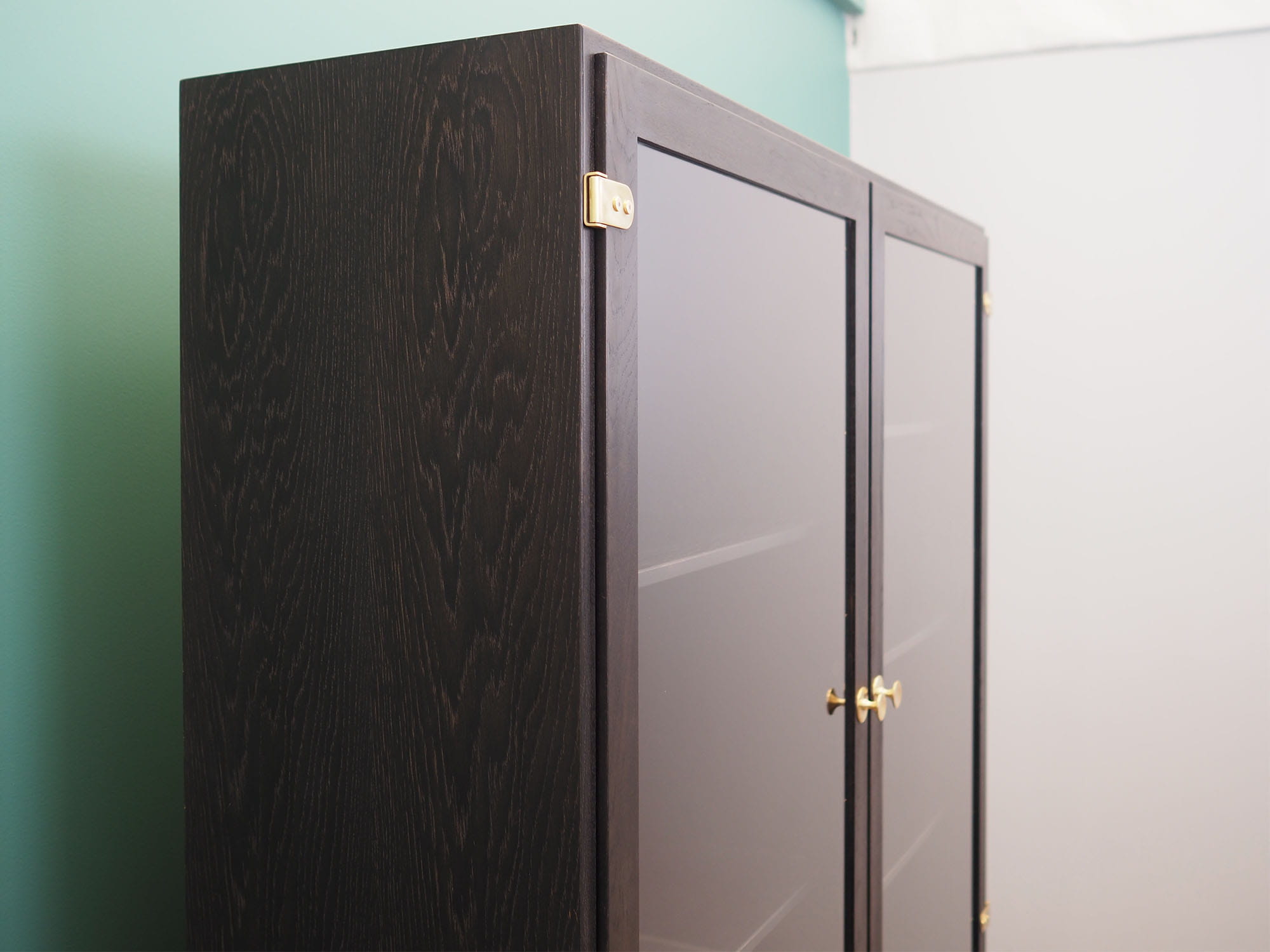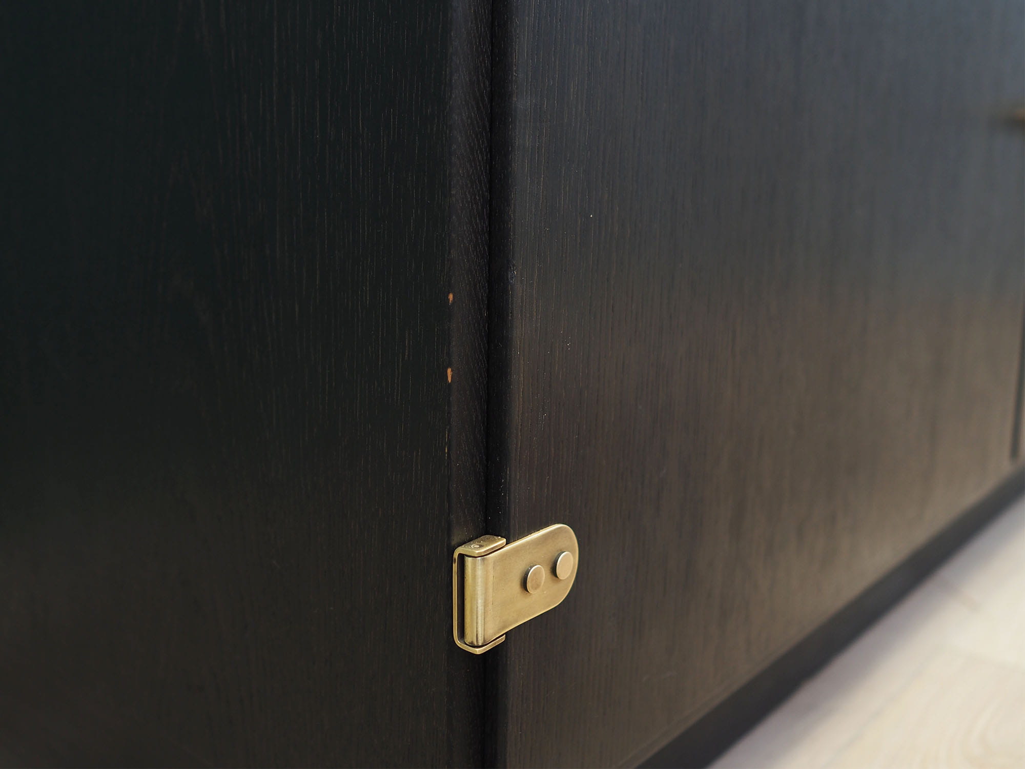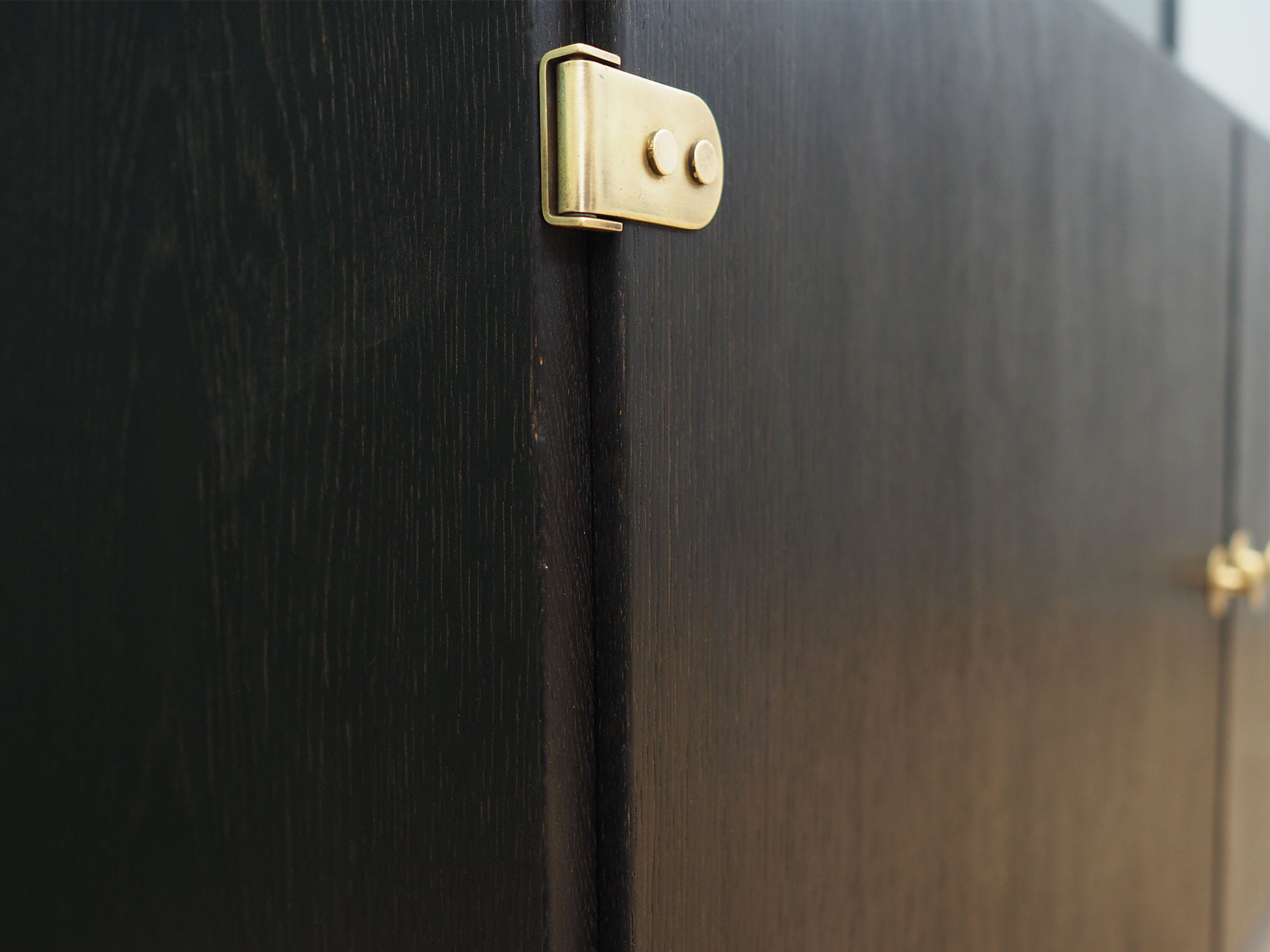 Konstrukcja pokryta jest fornirem dębowym. Uchwyty zostały wykonane z mosiądzu. Wewnątrz przestrzeń została wypełniona siedmioma praktycznymi półkami z możliwością regulacji wysokości. Mebel posiada praktyczne rozwiązanie drzwi otwieranych, dzięki czemu nie ograniczamy sobie dostępu do wnętrza. Kredens będzie idealnym dopełnieniem wyposażenia salonu bądź jadalni.