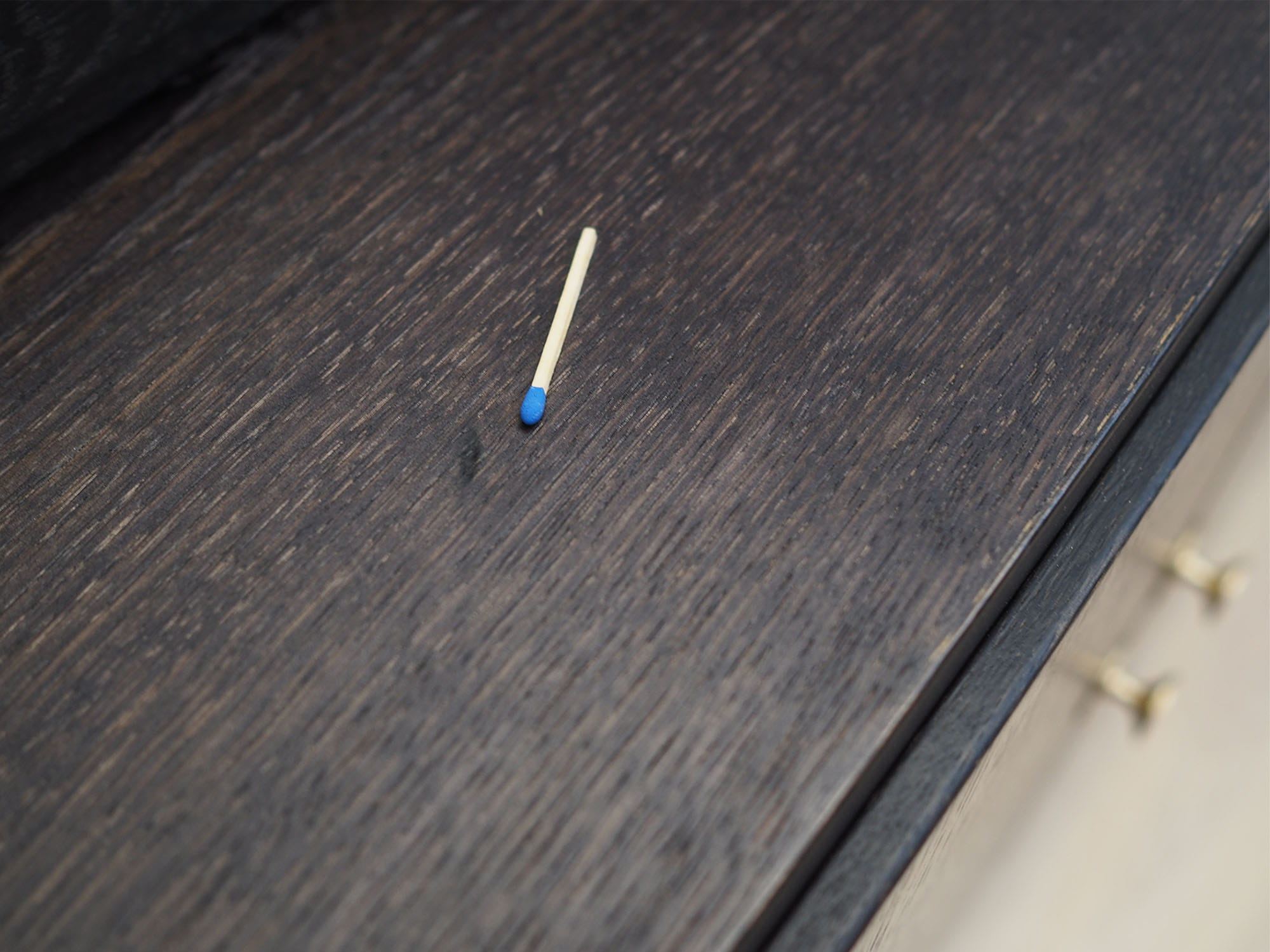 Stan: Powierzchnia mebla po odświeżeniu. Widoczne drobne zarysowania, obicia i wypełnione ubytki forniru. Większe ślady użytkowania przedstawione są na zdjęciach. Produkt jest gotowy do użytku.