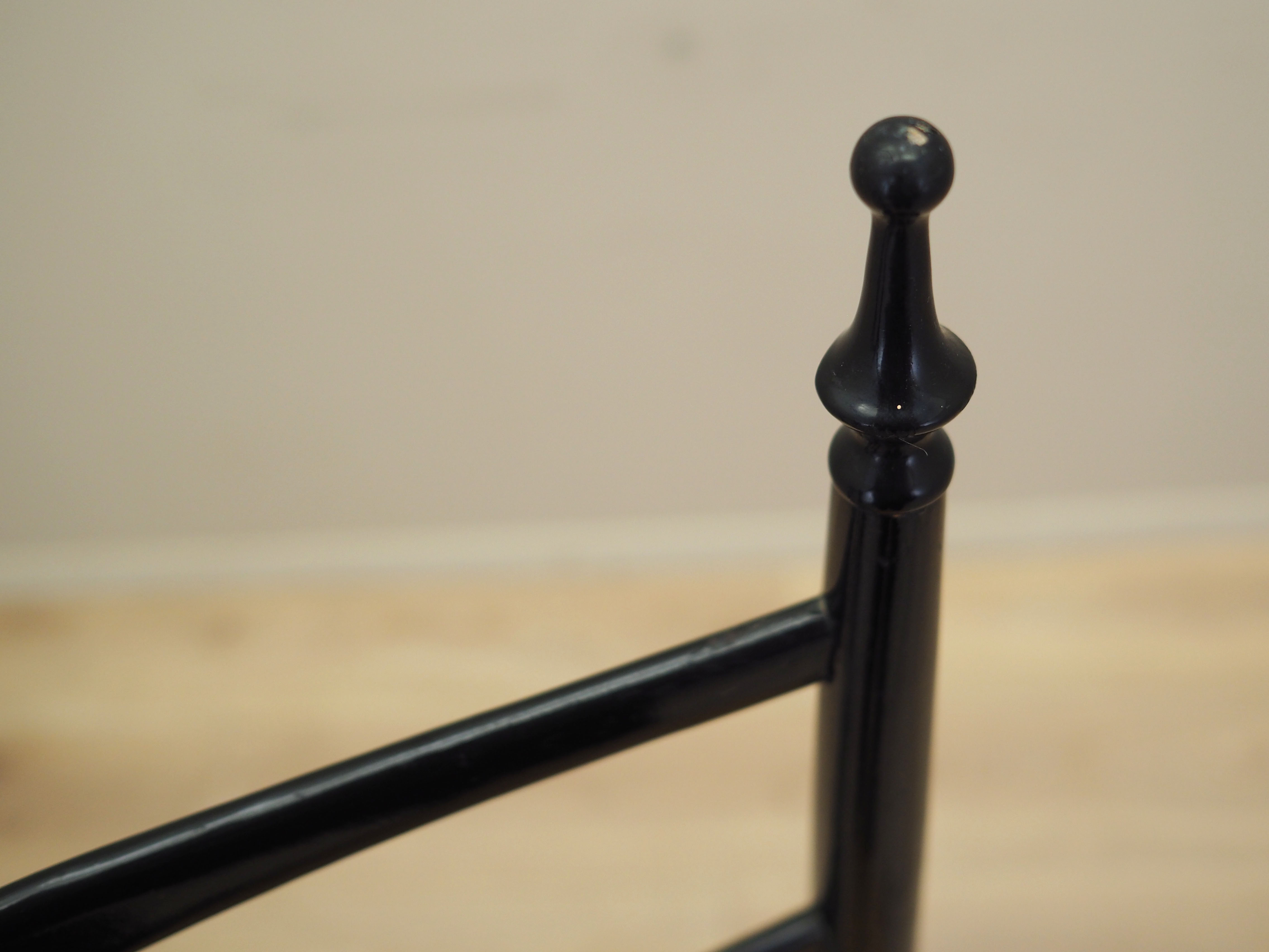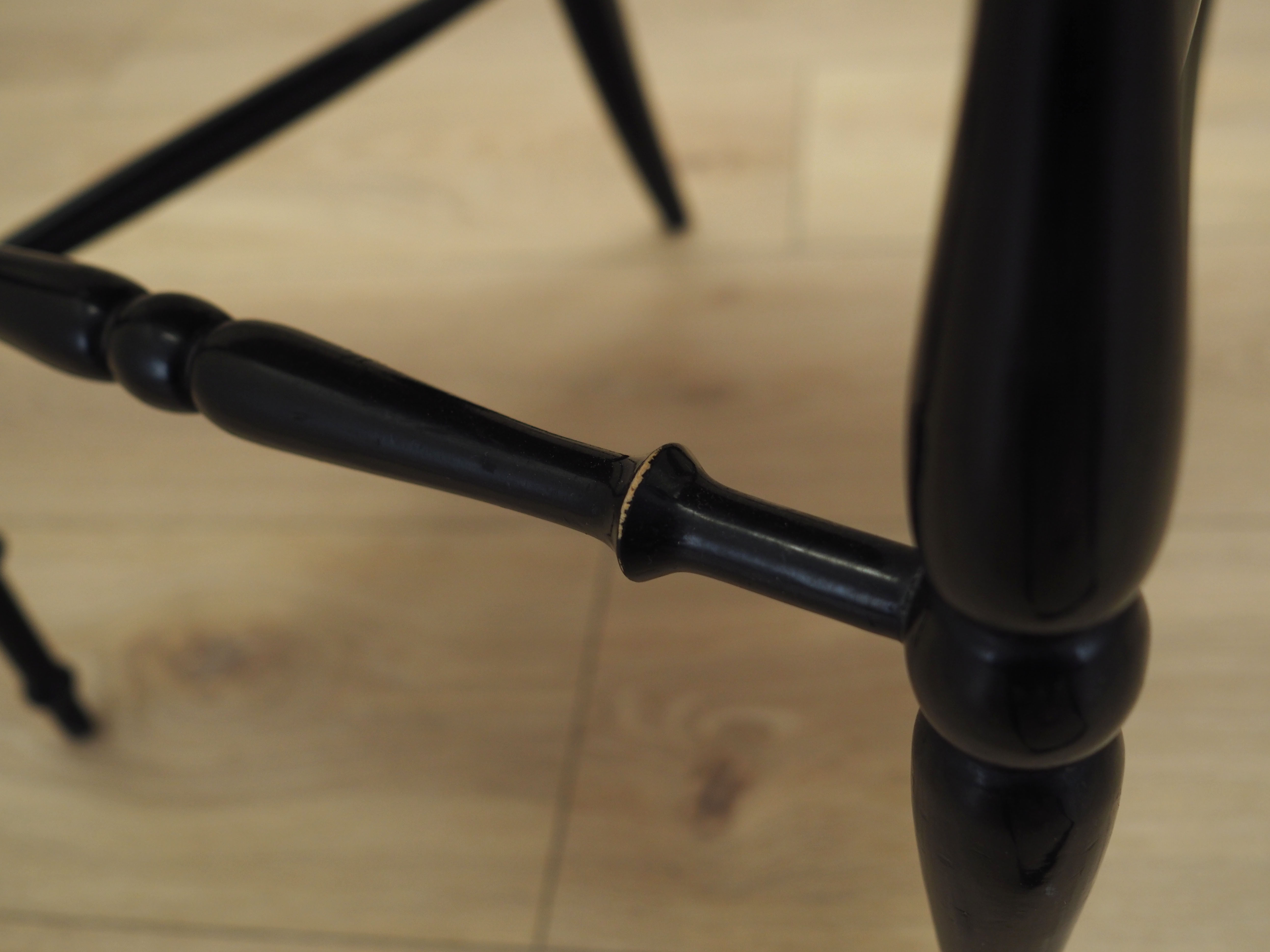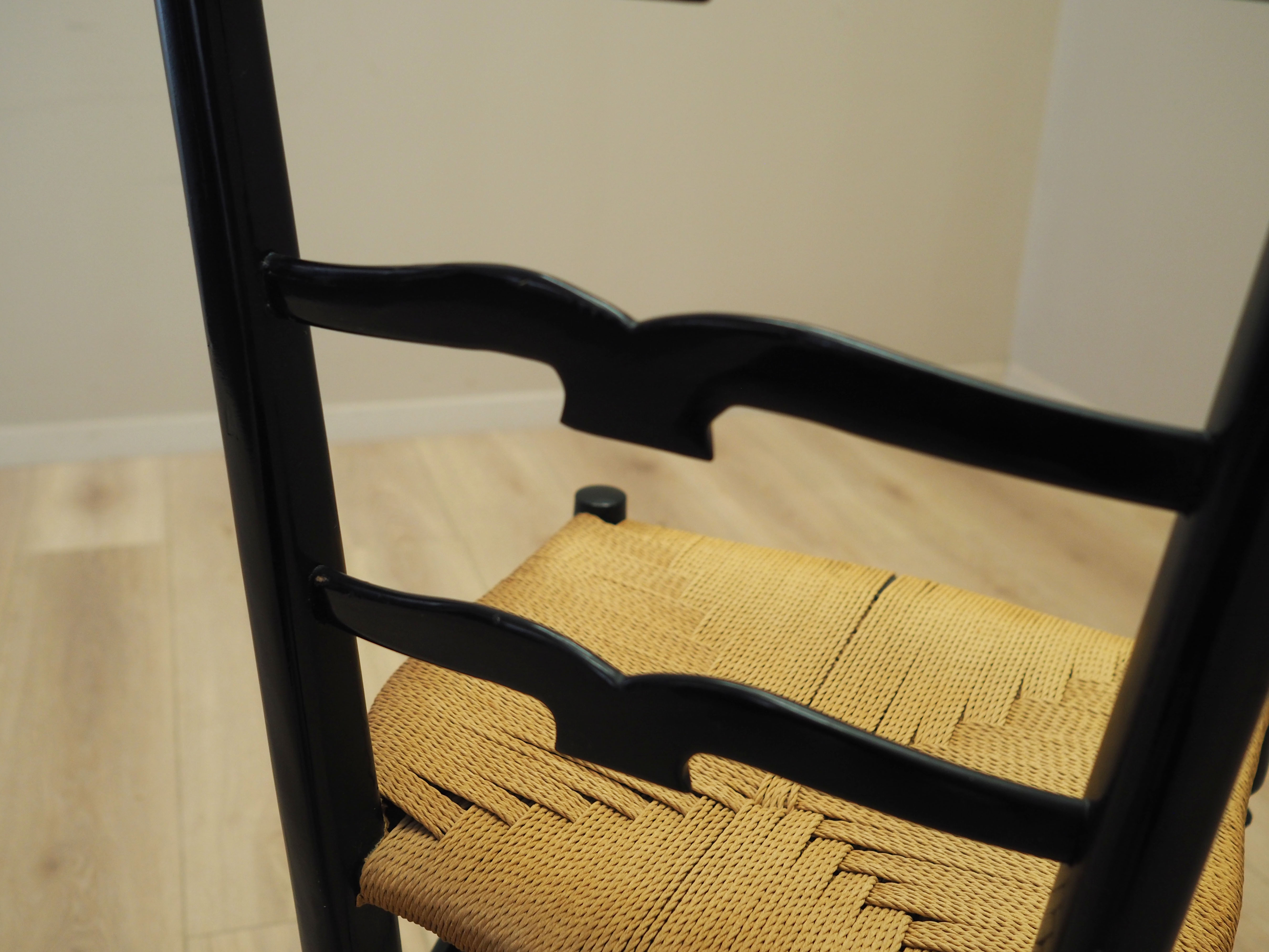 Konstrukcja wykonana jest z drewna bukowego wybarwionego na kolor czarny. Drewno po odświeżeniu. Siedzisko wykonane z rattanu.