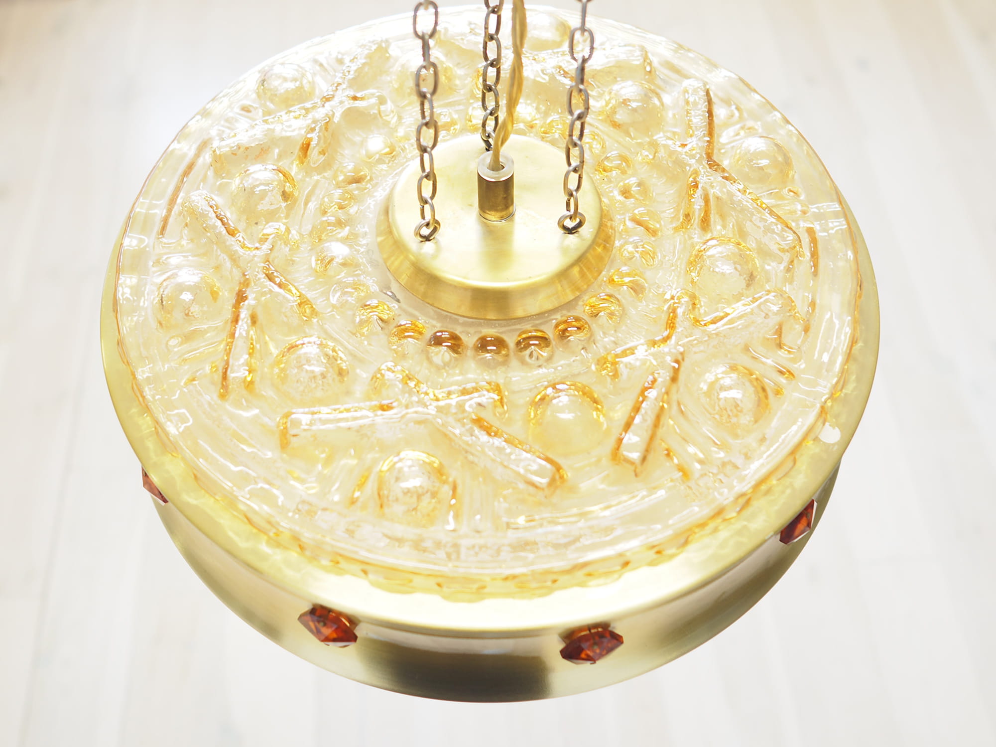Stan: Lampa zachowana w oryginalnym stanie z widocznymi normalnymi śladami użytkowania (drobne zarysowania). Przewód oryginalny, trzy żarówki E14. Wszystkie lampy są przez nas sprawdzone pod względem sprawności elektryki.
