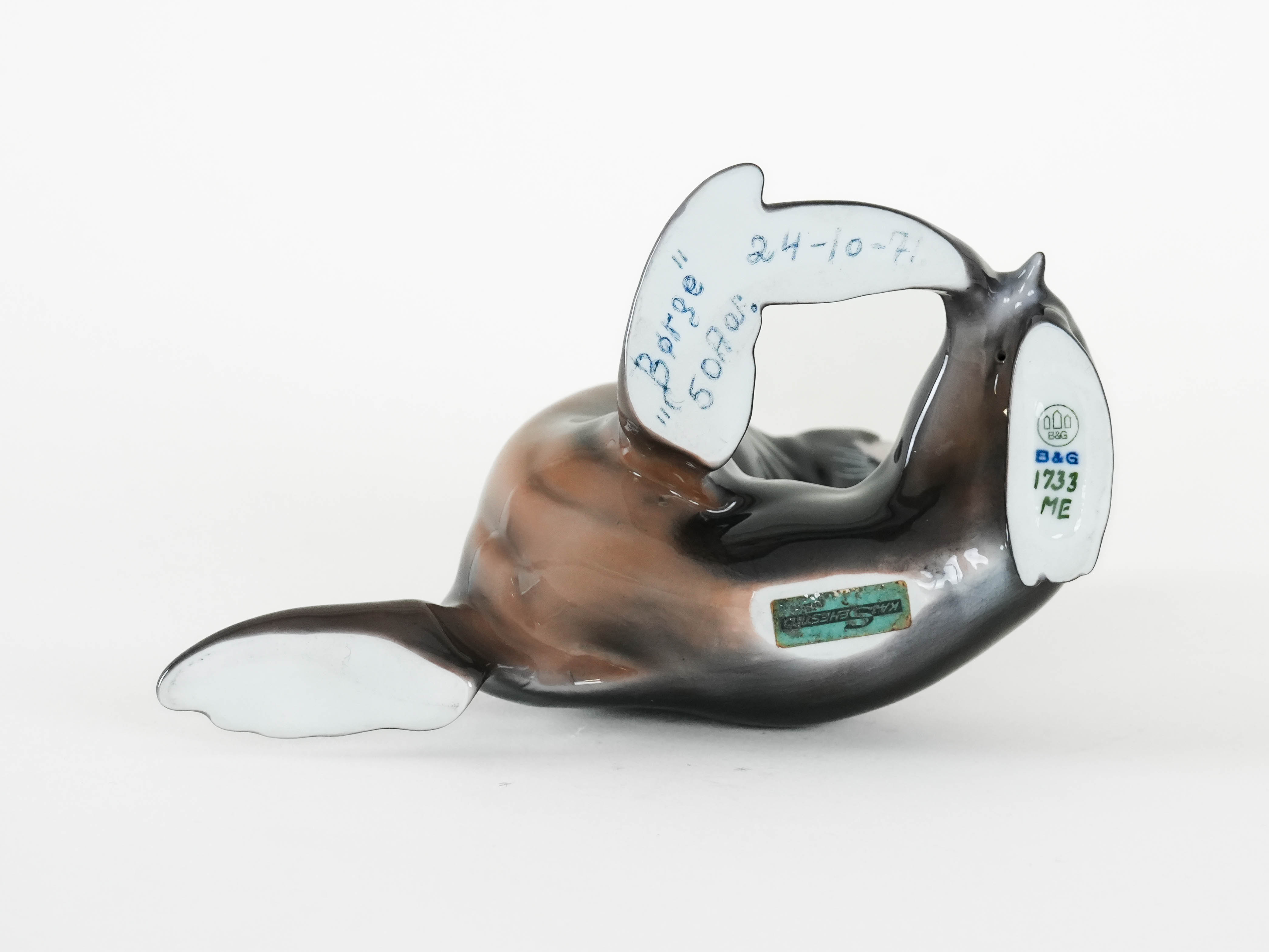 Porcelanowa figurka lew morski wyprodukowana w latach 70-tych przez znaną duńską manufakturę Bing & Grøndahl.