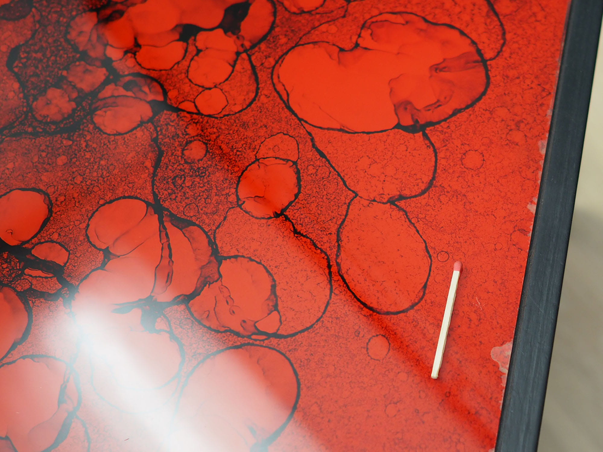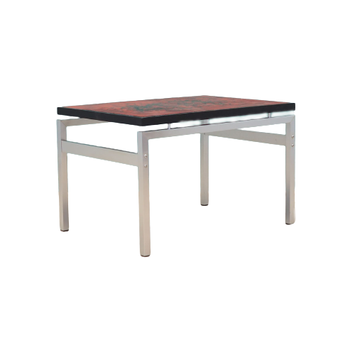 Konstrukcja wykonana została z polerowanego aluminium. Blat stolika został zaprojektowany przez Jeana Rene, warstwa górna została zabezpieczona szkłem. Rama blatu zrobiona jest z litego drewna barwionego na kolor czarny.