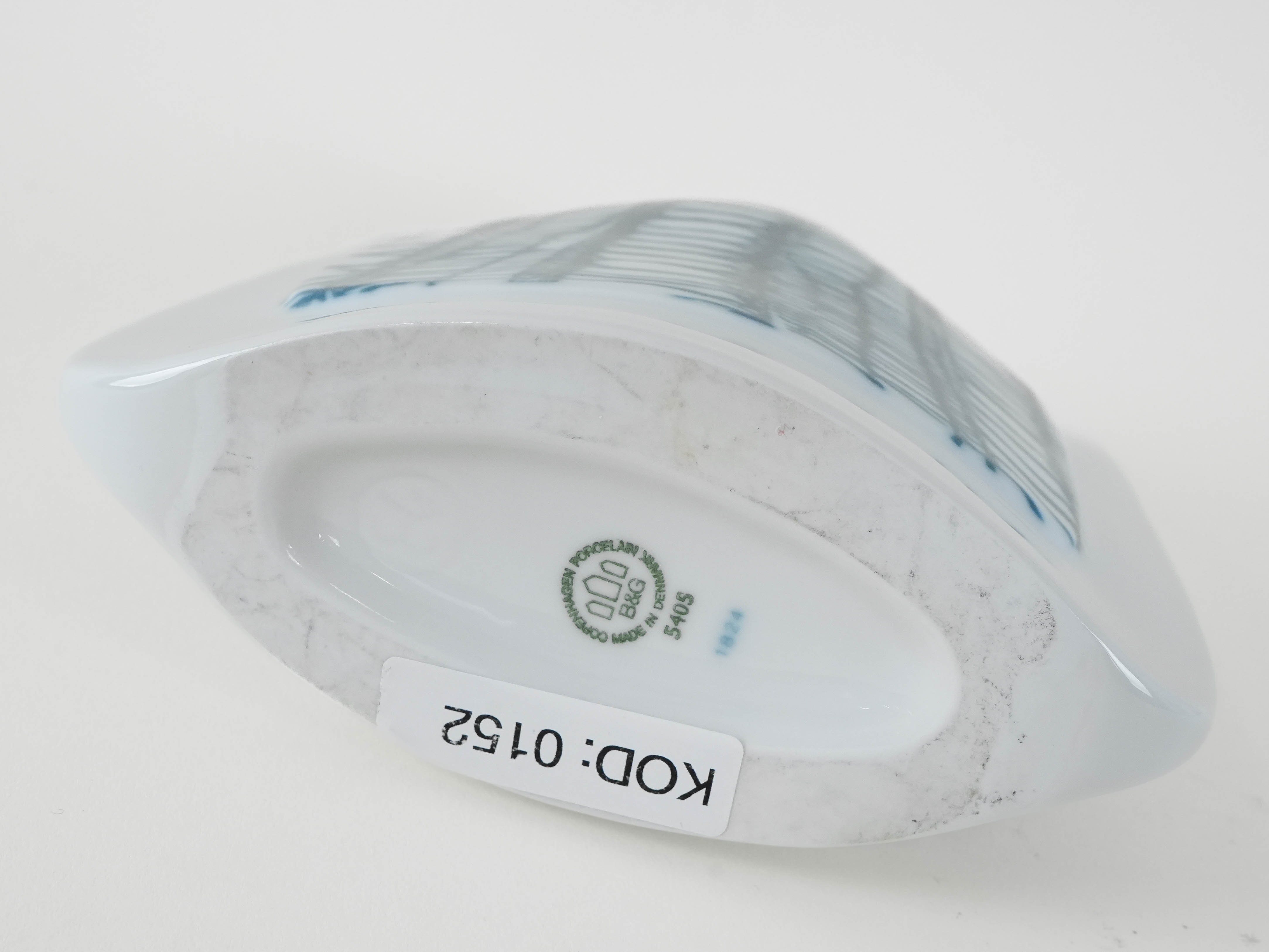 Biała porcelana o nowoczesnej, geometrycznej formie z dekoracyjnym, kobaltowym wzorem wewnątrz. Minimalistyczny design łączy skandynawską prostotę z elegancją charakterystyczną dla duńskiej szkoły wzornictwa.